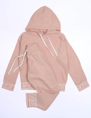 Трикотажный костюм для повседневной жизни выполнен из качественной турецкой пряжи. Костюм смотрится элегантно и стильно, отлично подходит для дома и отдыха.