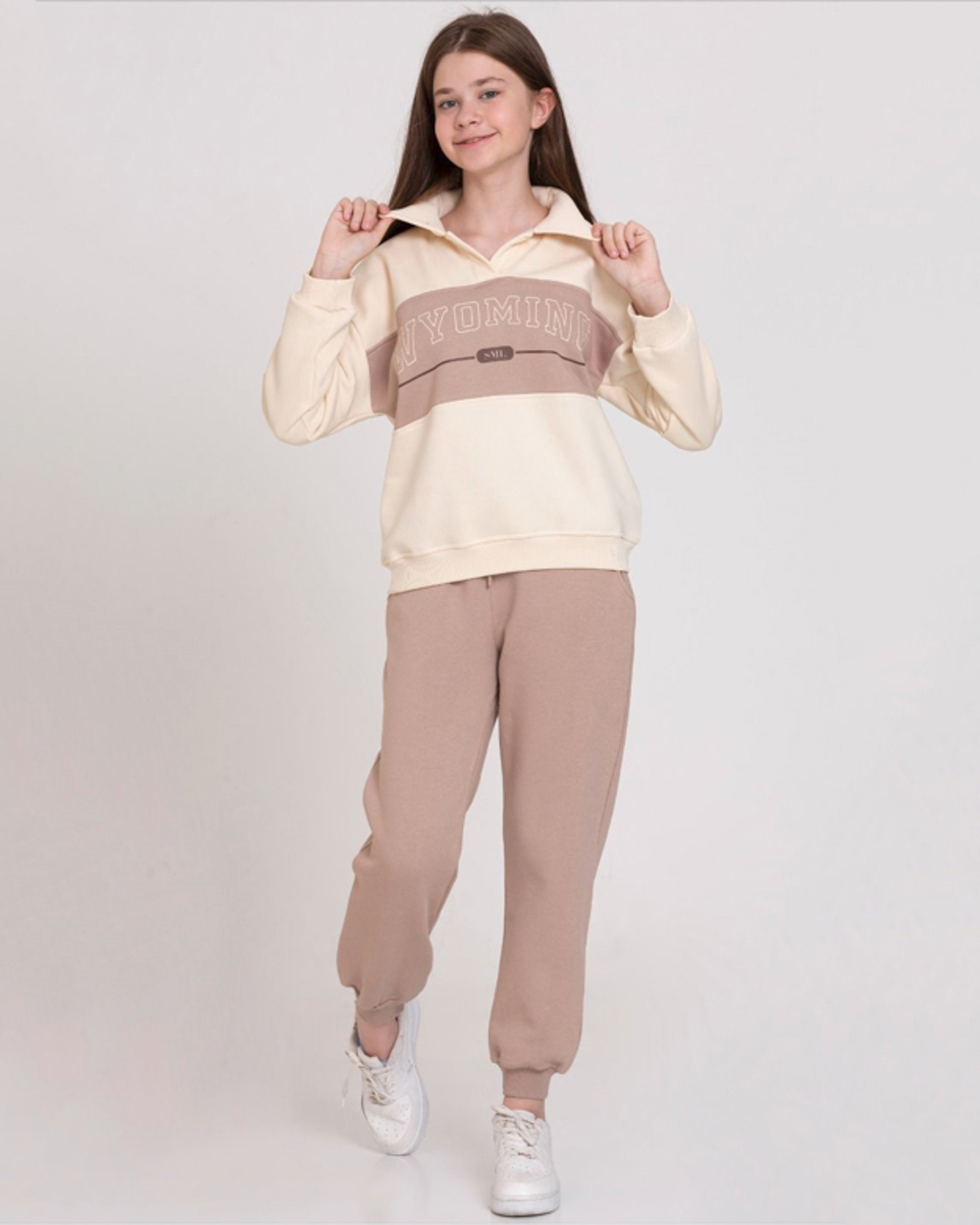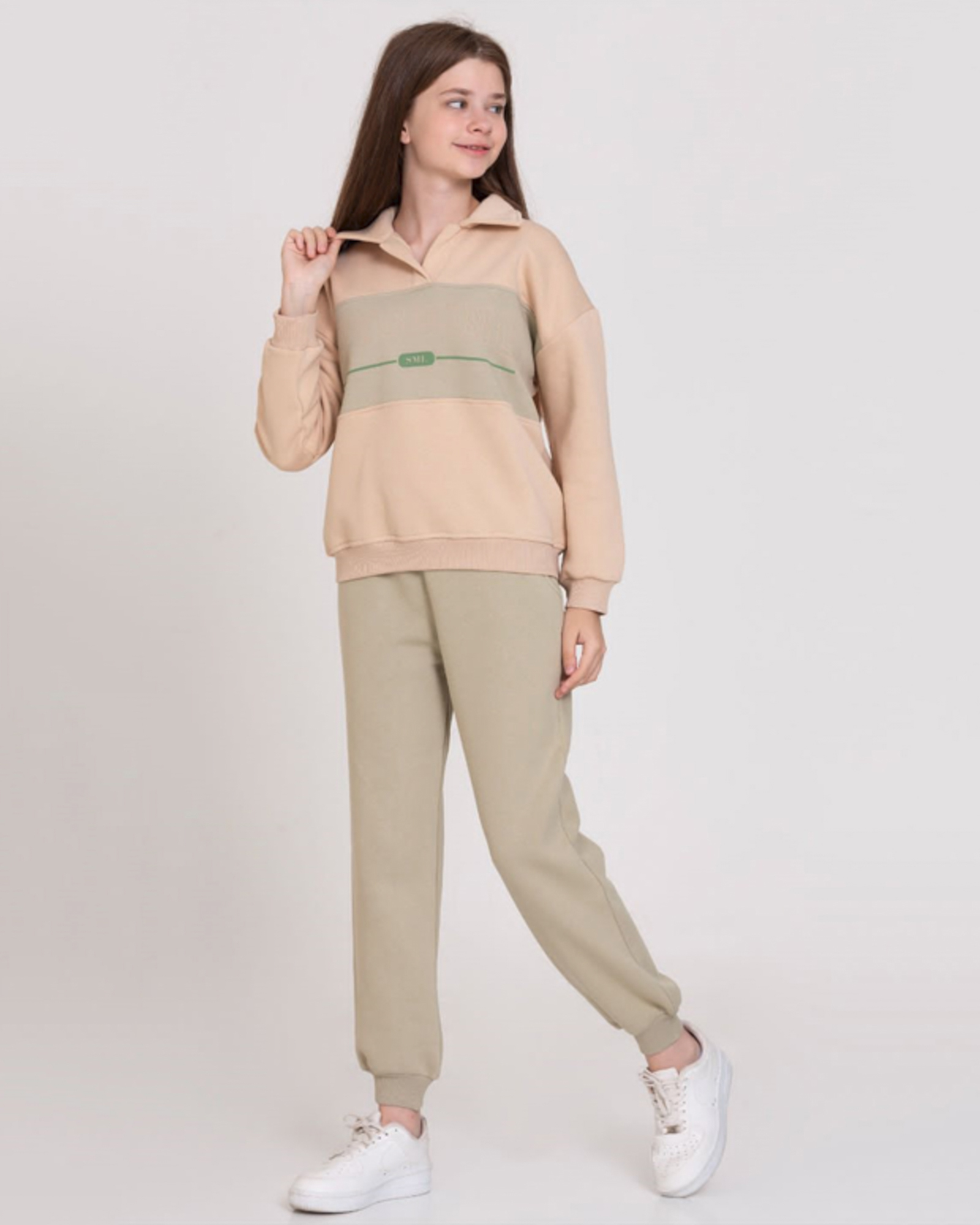 Трикотажный костюм SMILE для девочки — идеальный выбор для юных модниц, стремящихся к комфорту и стилю. Выполненный из высококачественного трикотажа футер (начес), произведённого в Турции, этот костюм обеспечивает тепло и уют в холодное время года. Свитшот с воротником-стойкой имеет удобную короткую молнию, что добавляет нотку современности и практичности. Он легко надевается и снимается, что особенно важно для активных девочек. Прямые брюки на манжетах не только стильно смотрятся, но и обеспечивают свободу движений. Смесовый состав ткани гарантирует долговечность и лёгкость ухода за изделием, что делает этот костюм идеальным вариантом для повседневной носки. Заказывая костюм SMILE оптом, вы делаете выбор в пользу качества и практичности, позволяя детям выглядеть модно и чувствовать себя комфортно каждый день.