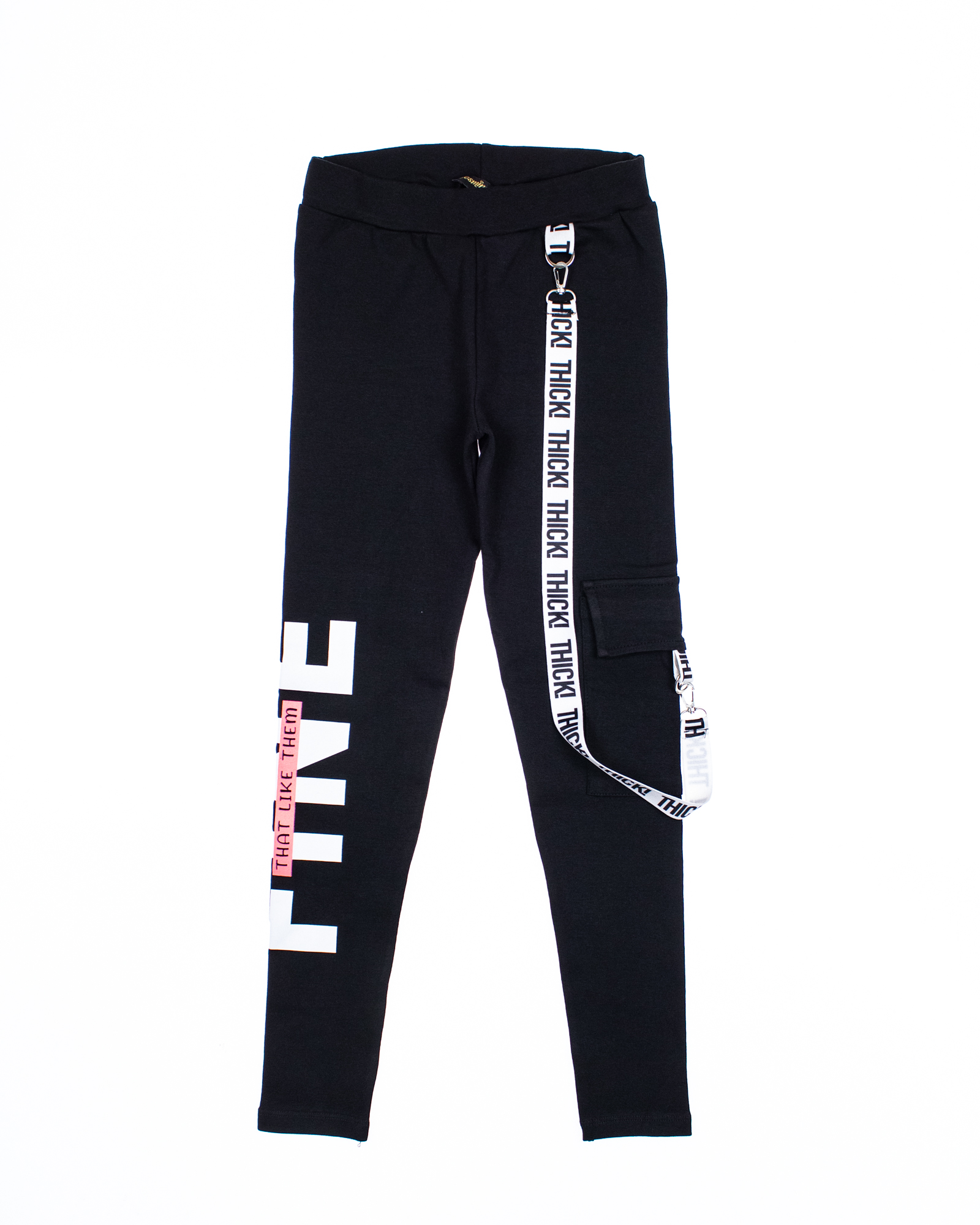 Плотные лосины Yesmina оптом. Лосины украшены печатным принтом, съемным ремнем, сбоку пришит накладной карман.
