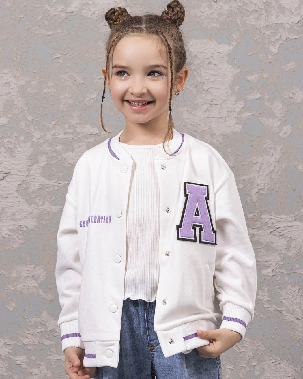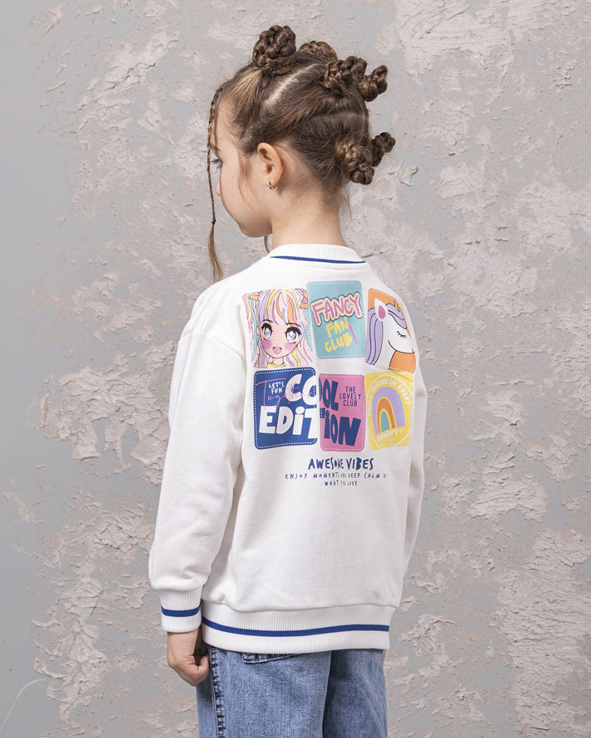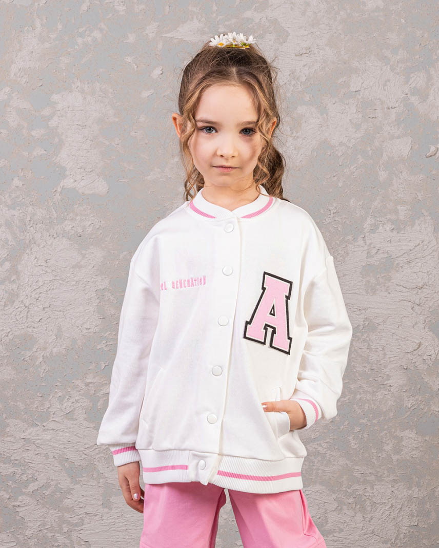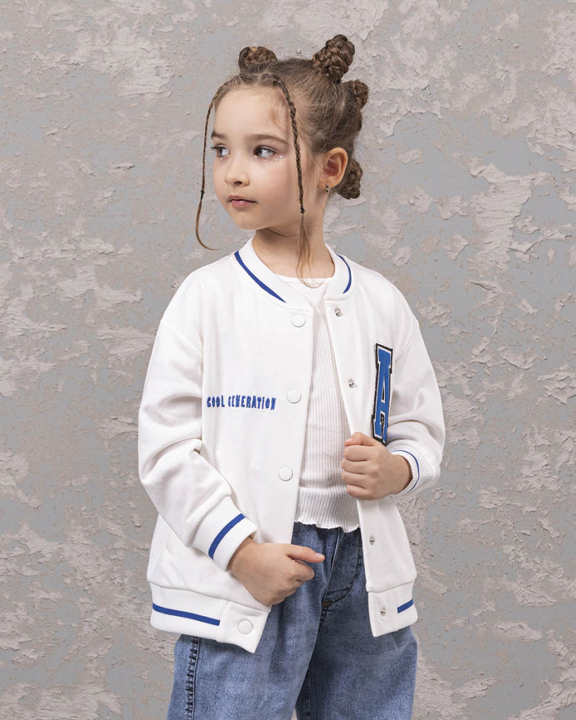 Детский бомбер из качественного трикотажа футер петля для девочки предлагается оптом от производителя из Турции. Этот стильный бомбер выполнен в молочном цвете, что придает ему нежный и аккуратный вид. Манжеты и горловина оформлены резинкой, что обеспечивает комфортную посадку и защиту от скольжения. Особое внимание заслуживает принт на передней и задней сторонах бомбера. Это классный модный принт, выполнен в стиле аниме, который понравится многим девочкам. Он придает этой модели особый шарм и экспрессивность, делая ее необычной и запоминающейся. Дополнительным преимуществом этого бомбера являются два кармана по бокам. Качественный трикотаж футер петля обеспечит долговечность изделию, а производство в Турции гарантирует высокое качество и стандарты.