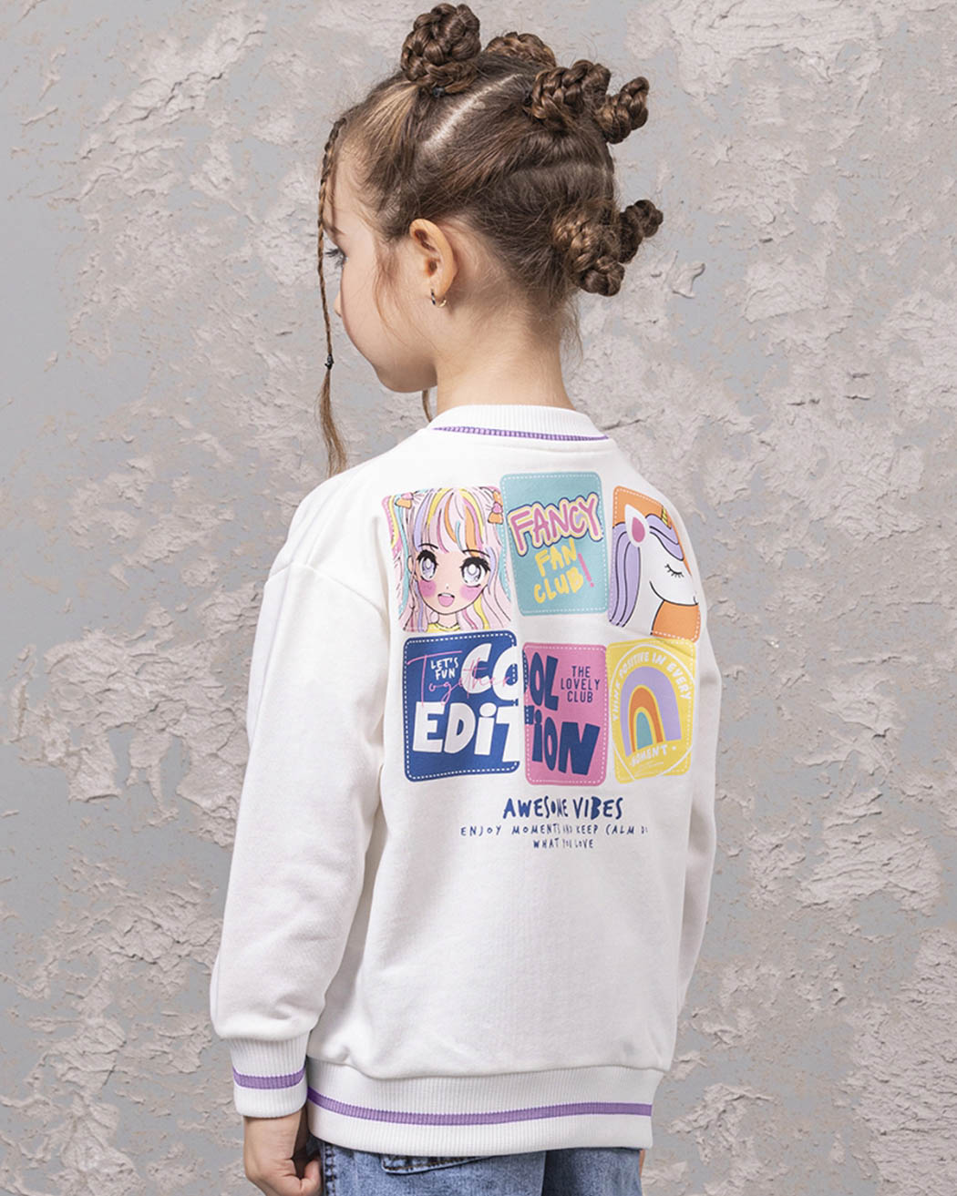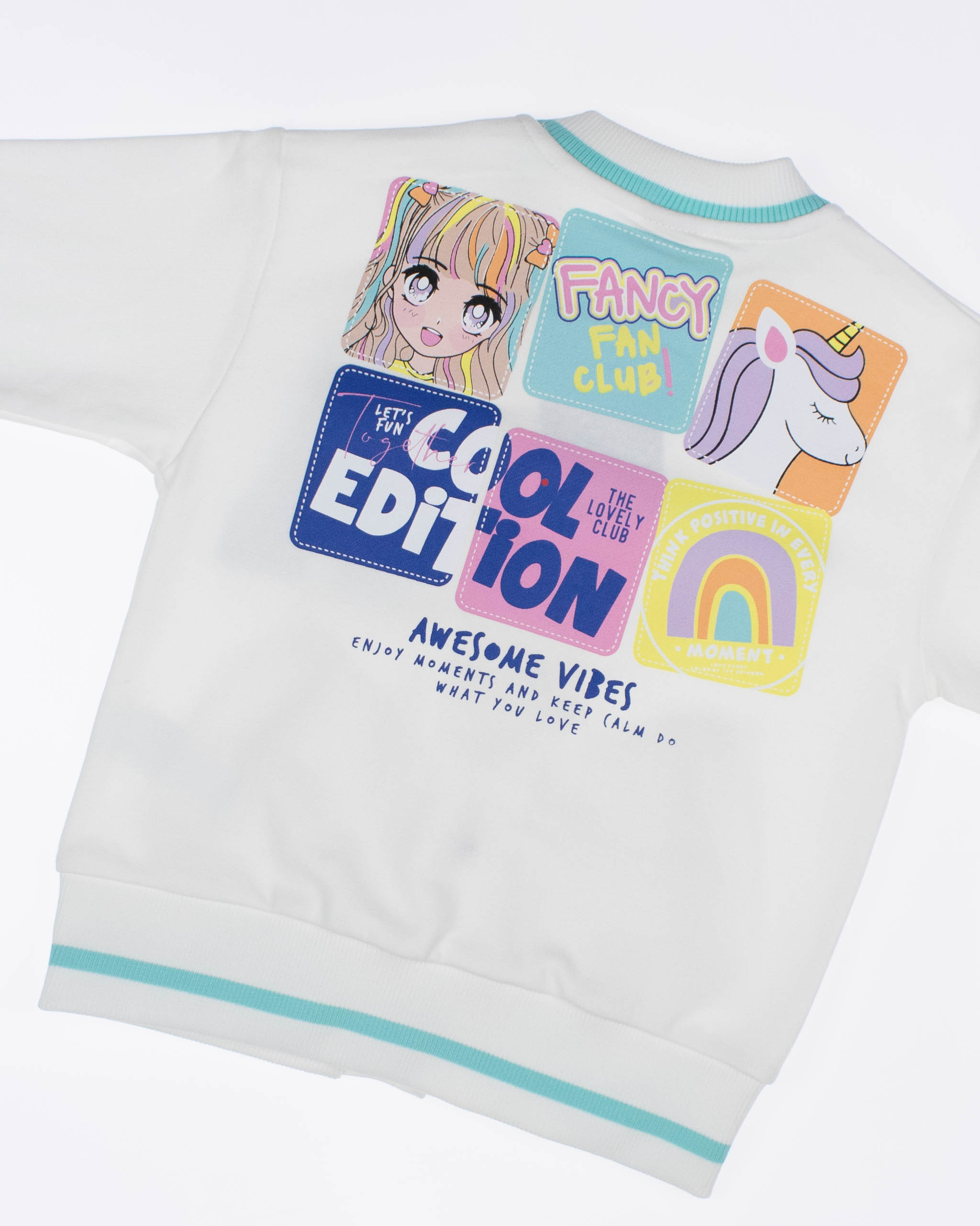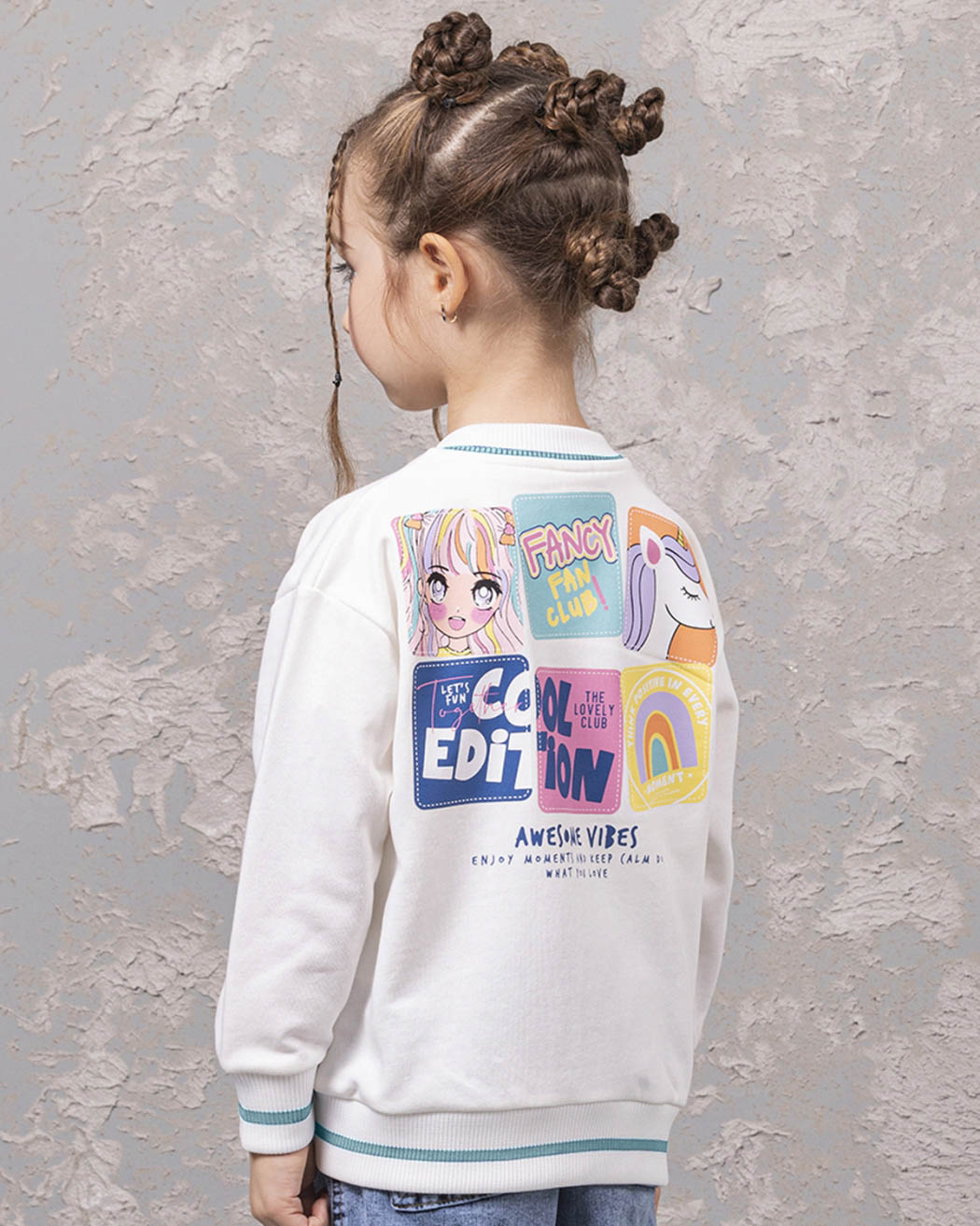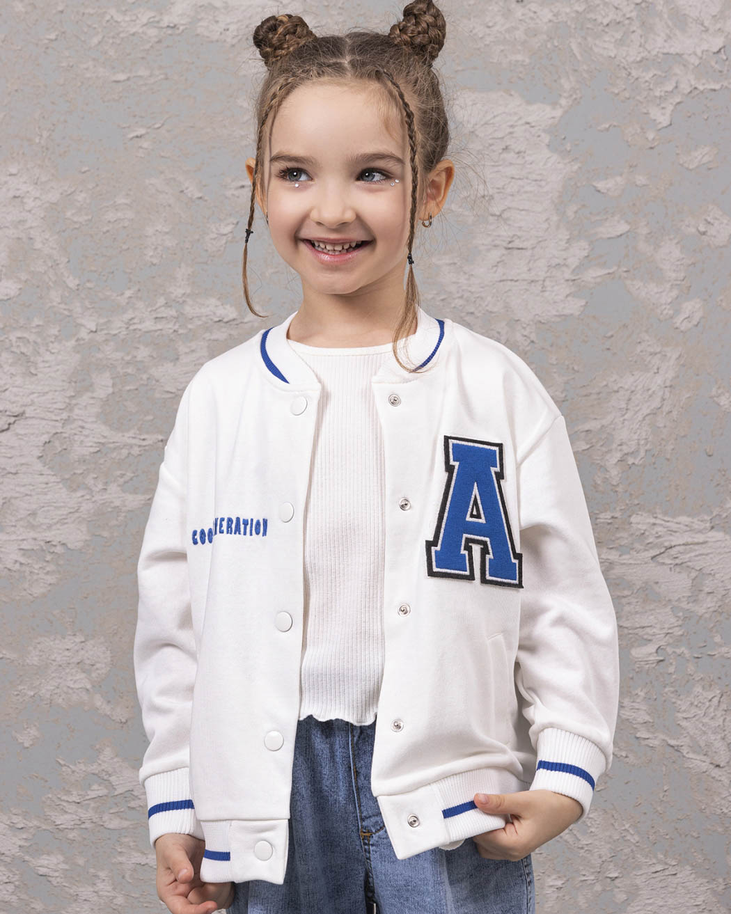 Детский бомбер из качественного трикотажа футер петля для девочки предлагается оптом от производителя из Турции. Этот стильный бомбер выполнен в молочном цвете, что придает ему нежный и аккуратный вид. Манжеты и горловина оформлены резинкой, что обеспечивает комфортную посадку и защиту от скольжения. Особое внимание заслуживает принт на передней и задней сторонах бомбера. Это классный модный принт, выполнен в стиле аниме, который понравится многим девочкам. Он придает этой модели особый шарм и экспрессивность, делая ее необычной и запоминающейся. Дополнительным преимуществом этого бомбера являются два кармана по бокам. Качественный трикотаж футер петля обеспечит долговечность изделию, а производство в Турции гарантирует высокое качество и стандарты.