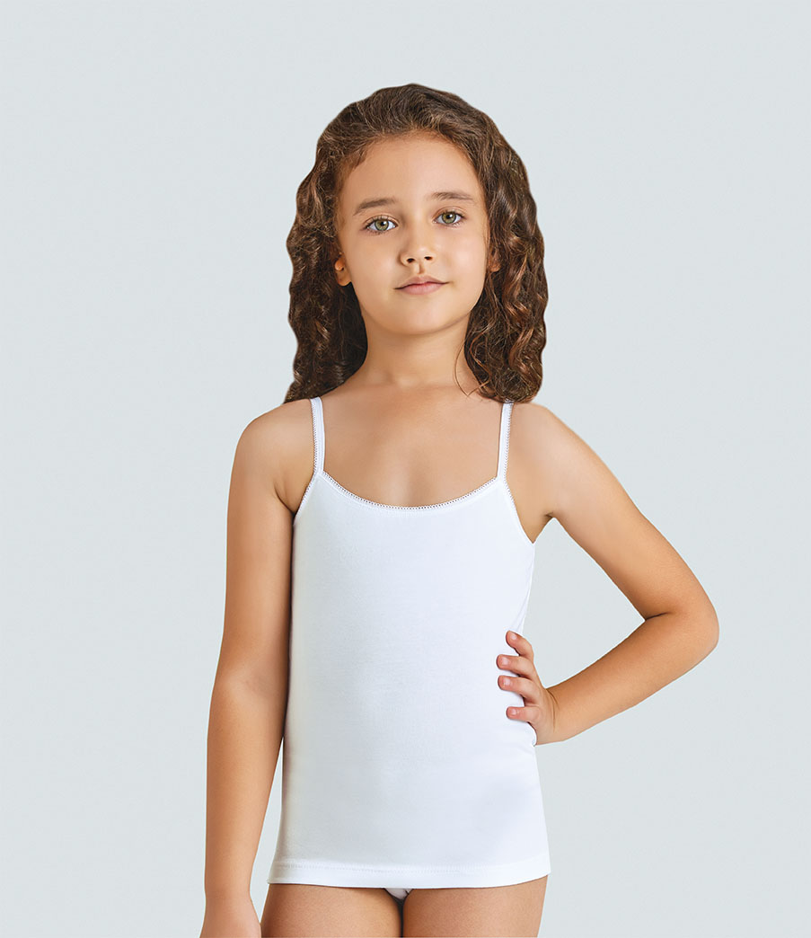 Белая бельевая майка для девочек отличного качества и комфортна при ношении. Однотонная майка без рисунка, классическая модель для ежедневной носки. Майка для девочки идеально под блузки белого цвета. Майка на тонких и широких бретелях может использоваться как для сна , в школу , под одежду . Ткань очень практична, комфортна и гипоалергенна. Белье для девочек не мнется, хорошо тянется, сохраняя первоначальный вид после многочисленных стирок.