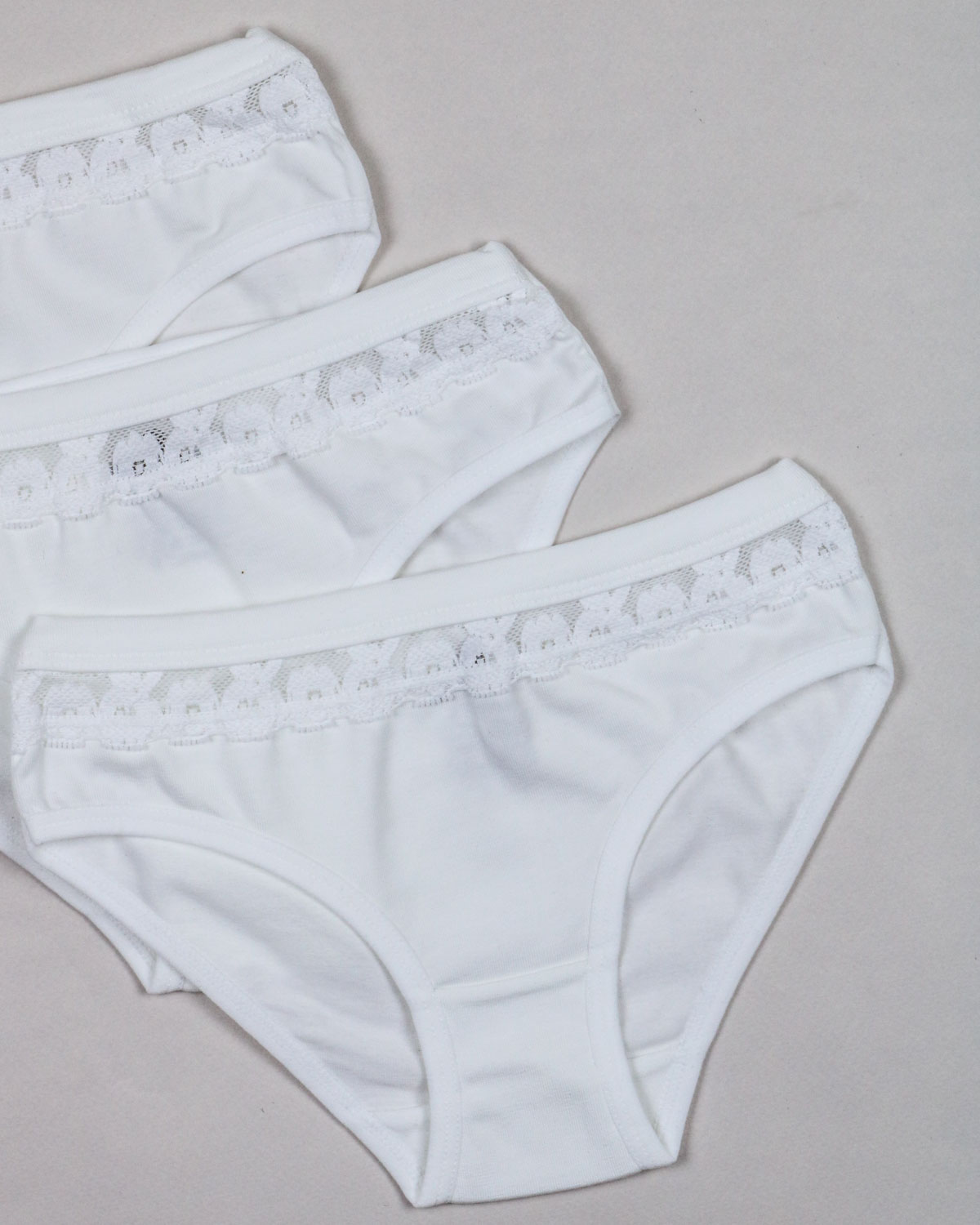 Трусы детские для девочек хлопковые, украшены узорчатым эластичным кружевом.Классическая модель с удобной посадкой, мягкие на ощупь, комфортные и безупречные в носке. Мягкая резинка не давит и не натирает кожу. Дышащая, хлопковая ткань гарантирует комфорт в течение дня.